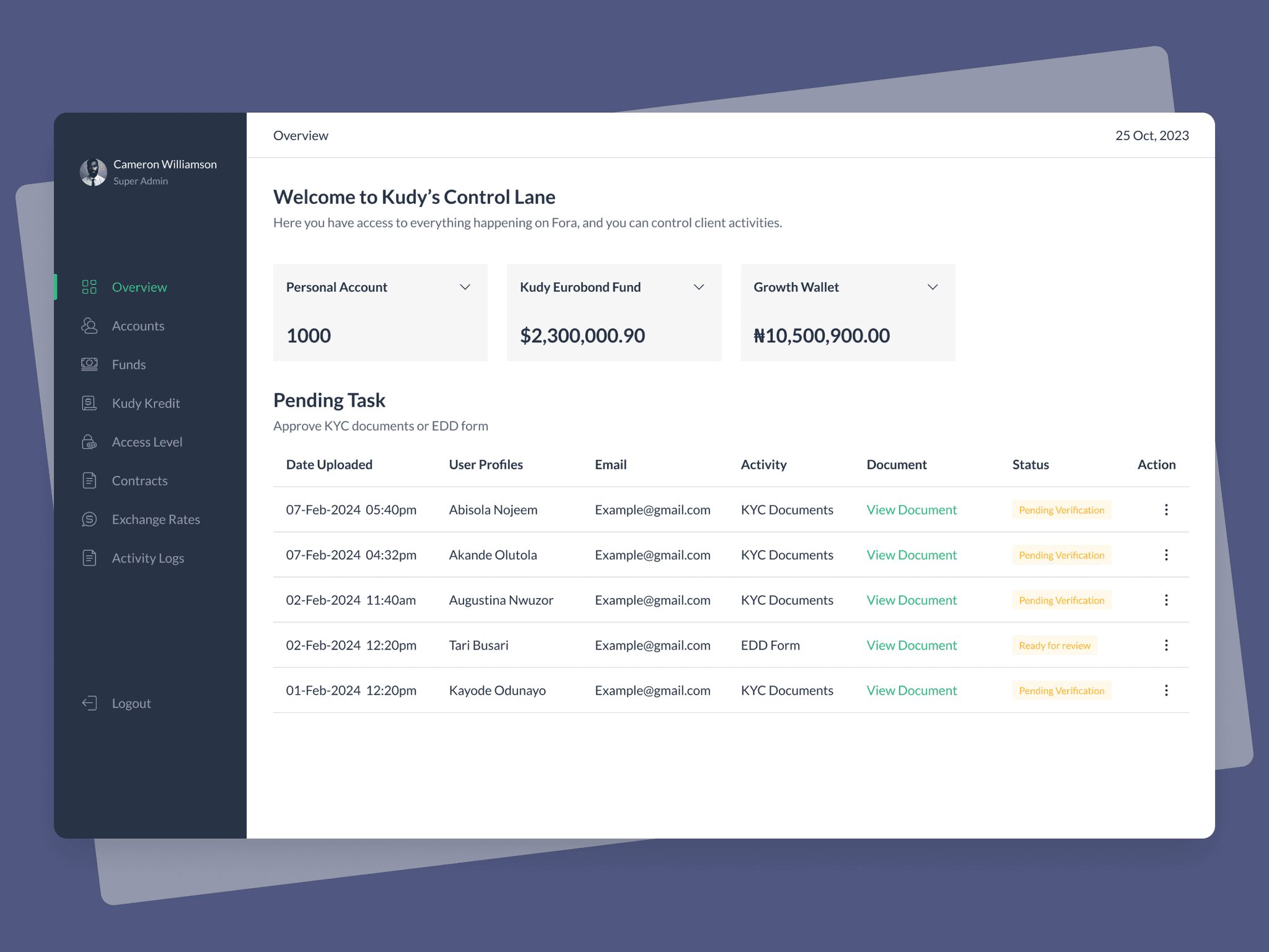 Led the design of an admin interface, enabling efficient management of user activities on Fora, including KYC verification, loan approvals, and transaction tracking.